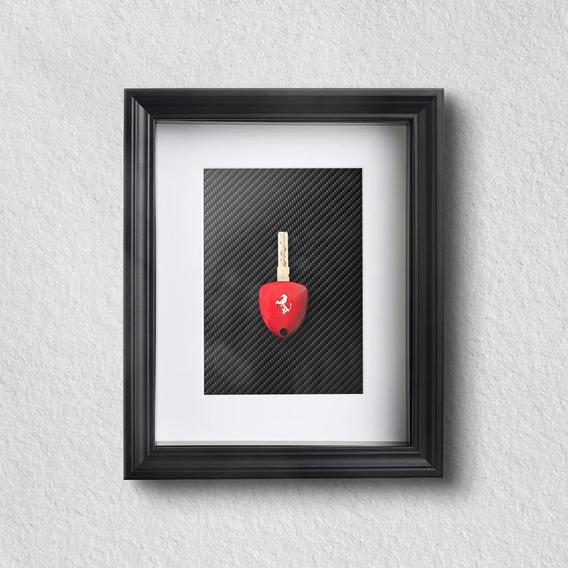 A frame that contains a key to a luxury car is our distinctive item. Every item is painstakingly made to encapsulate the spirit of luxury and the car. The key, a representation of strength and style, is carefully positioned inside the frame to provide a close-up view of the automobile industry.