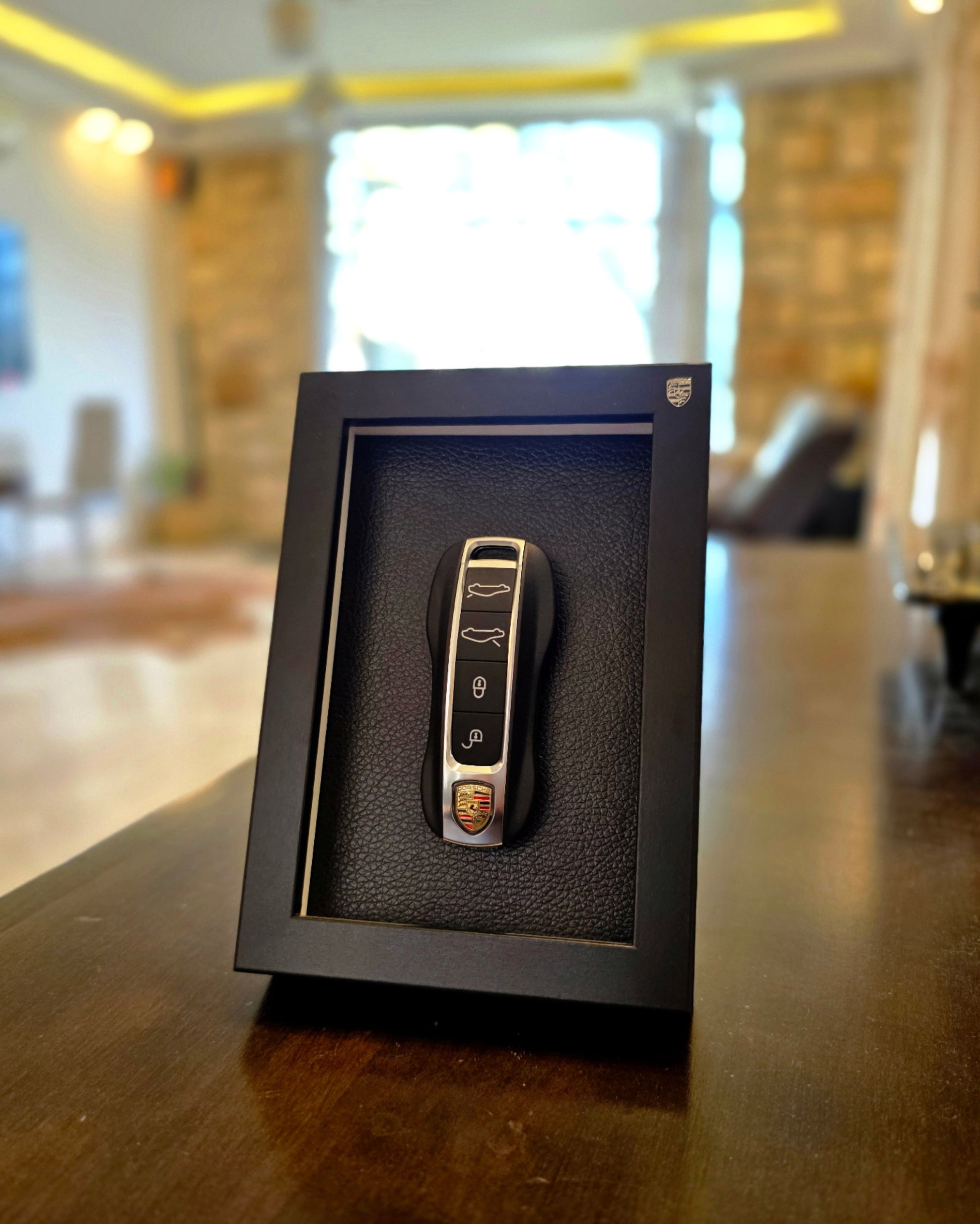 This handcrafted display features the unmistakable Porsche key — not for function, but for vision.