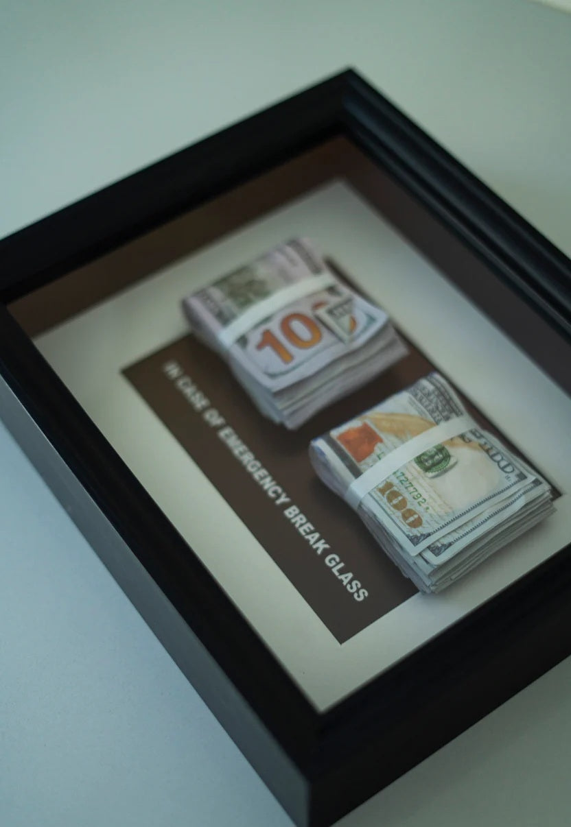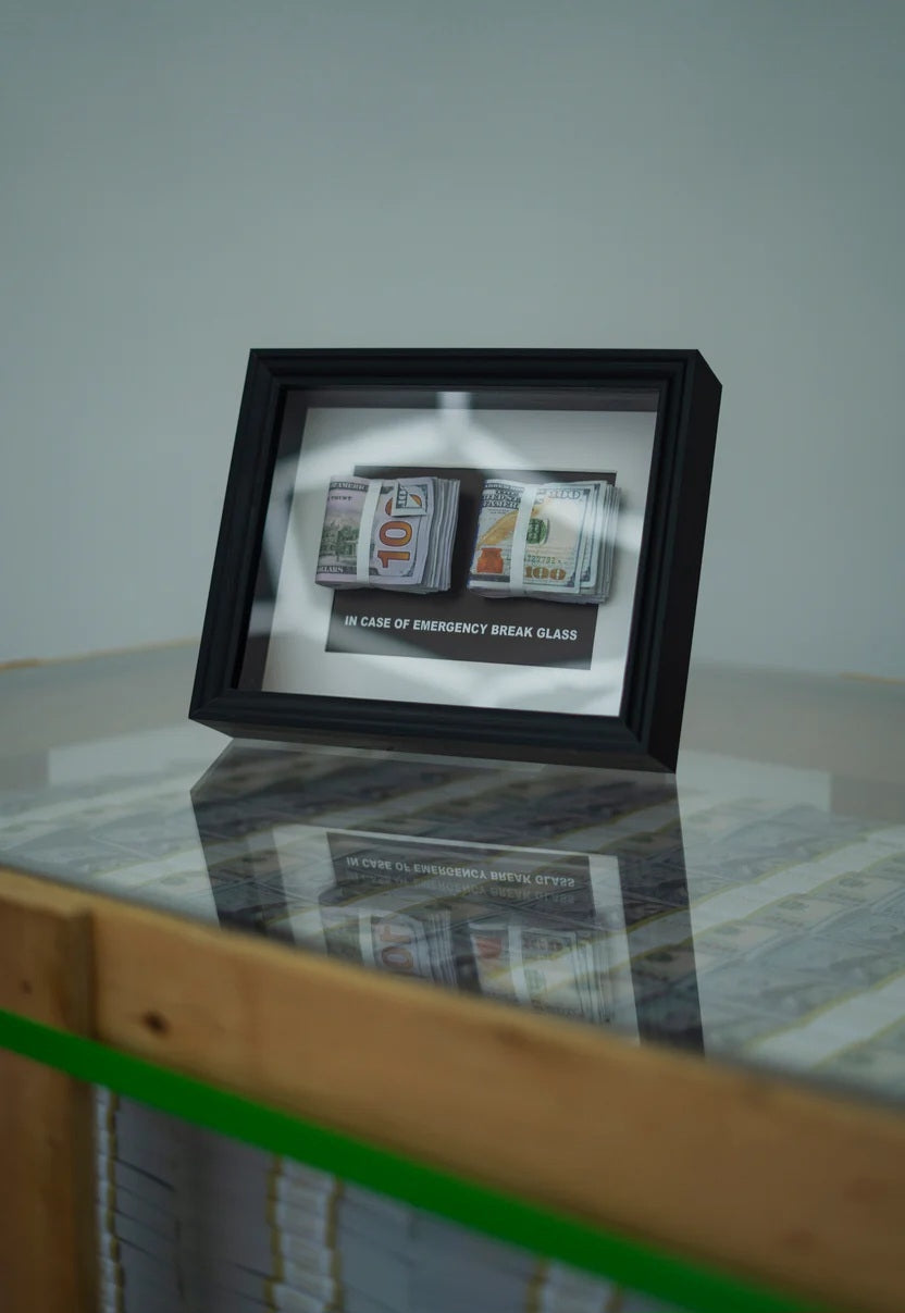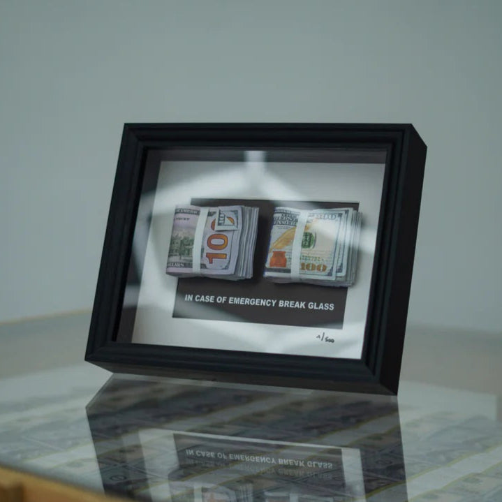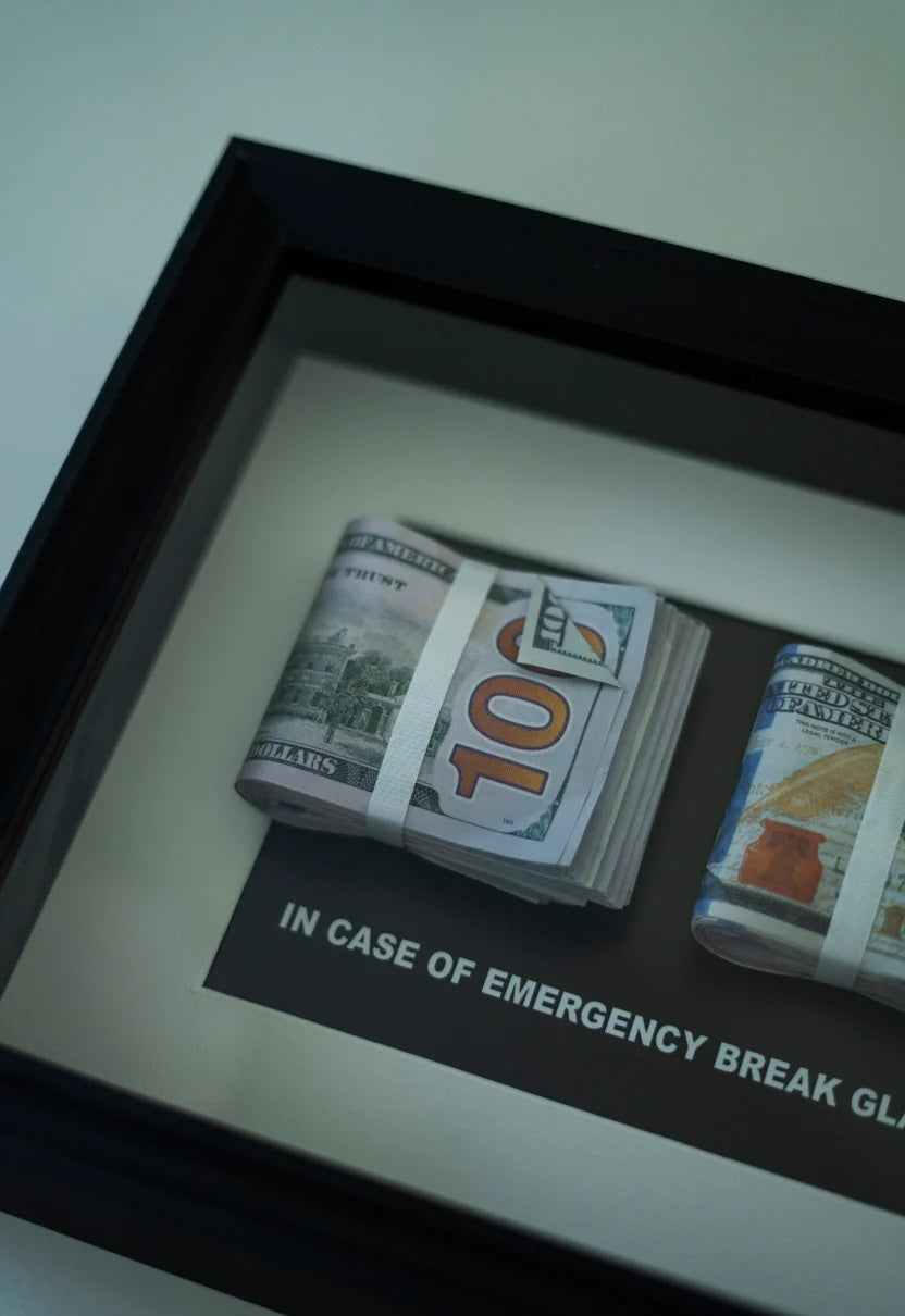 Crafted with precision and attitude, this piece features hyper-realistic stacks of cash, beautifully presented behind glass – a symbol of abundance, power, and pure hustle. It doesn’t ask for permission. It stares at you every morning and whispers:
